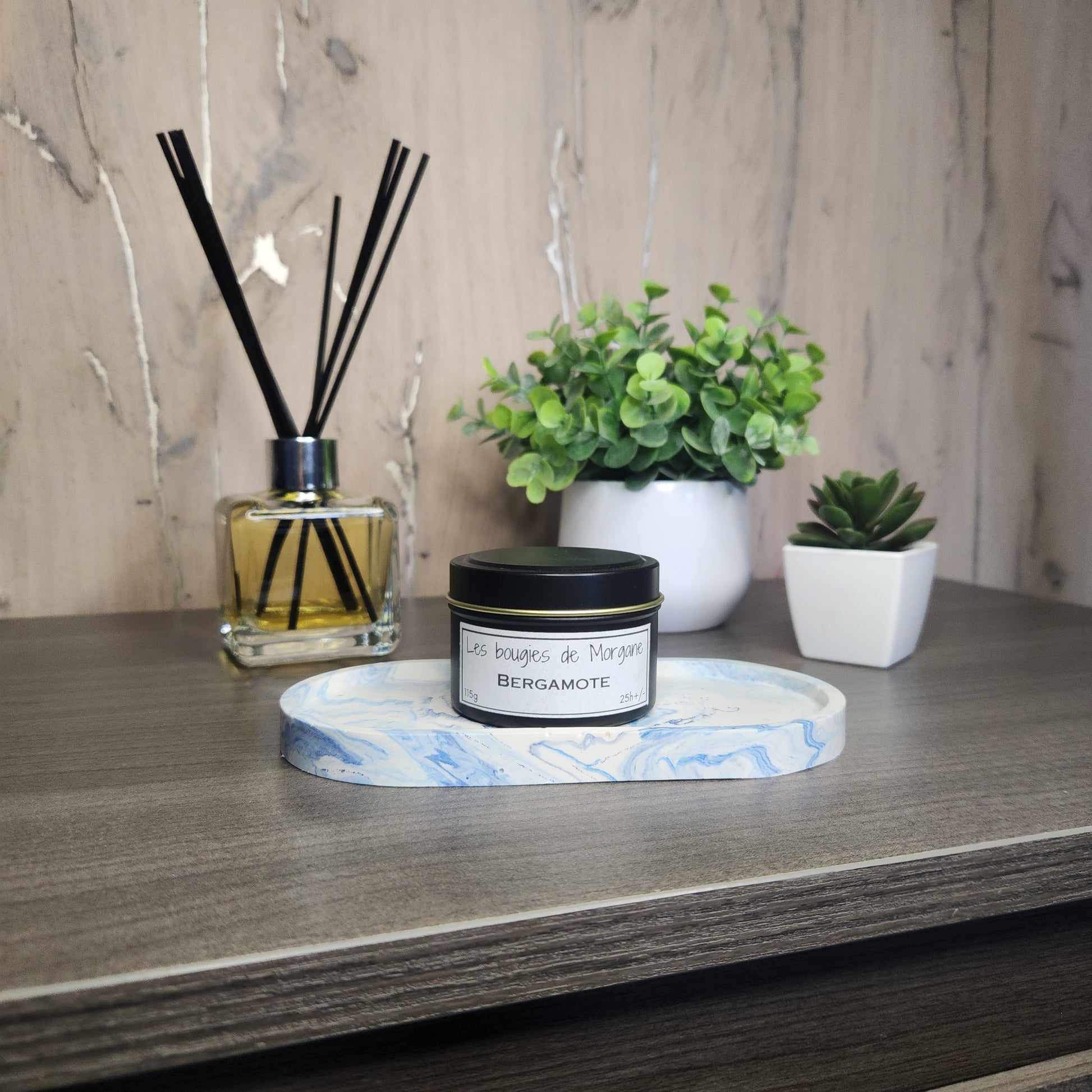 Ingrédients: Cire de soja 100% végétale, suivie de fragrance de Grasse, mèche en coton.