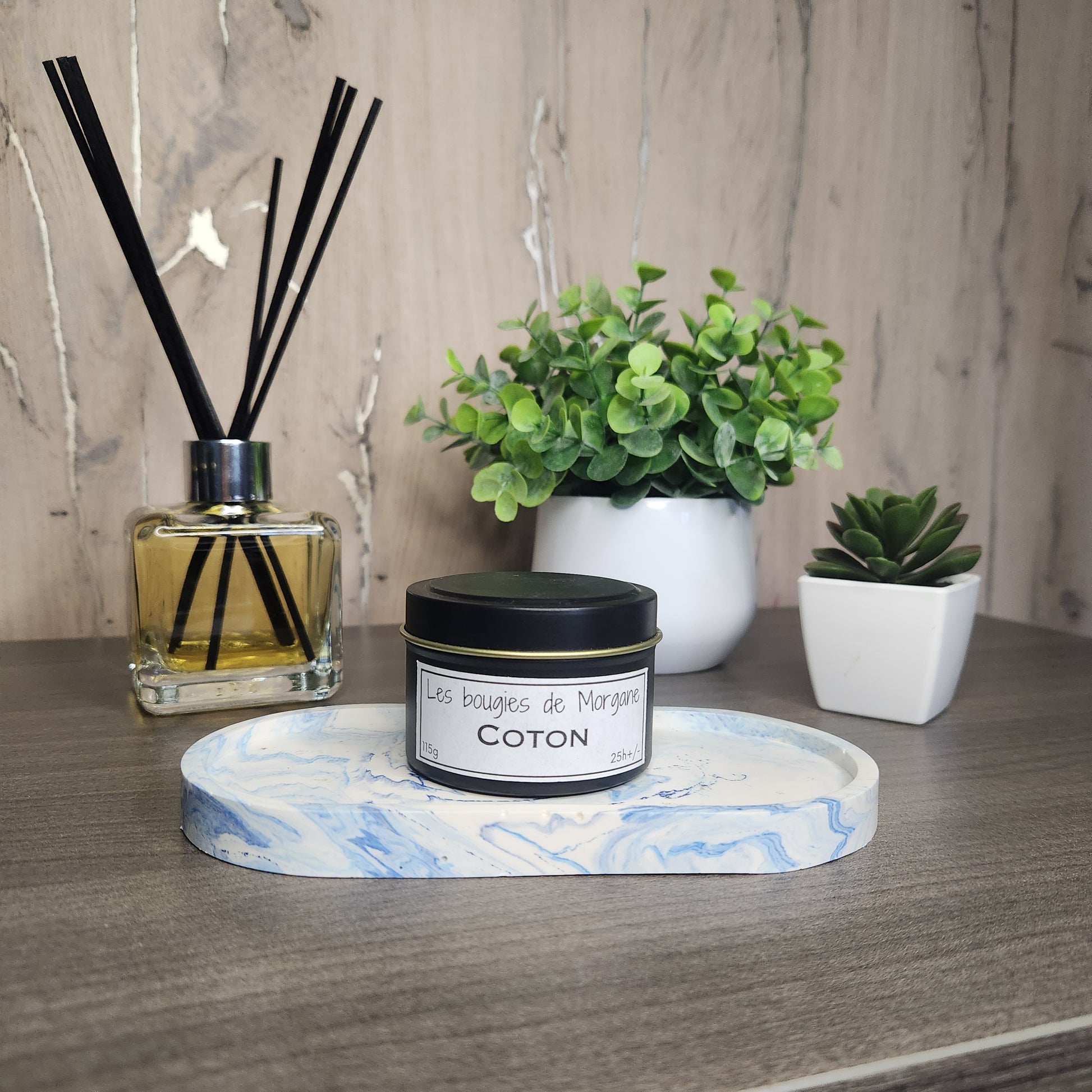 Ingrédients: Cire de soja 100% végétale, suivie de fragrance de Grasse, mèche en coton.