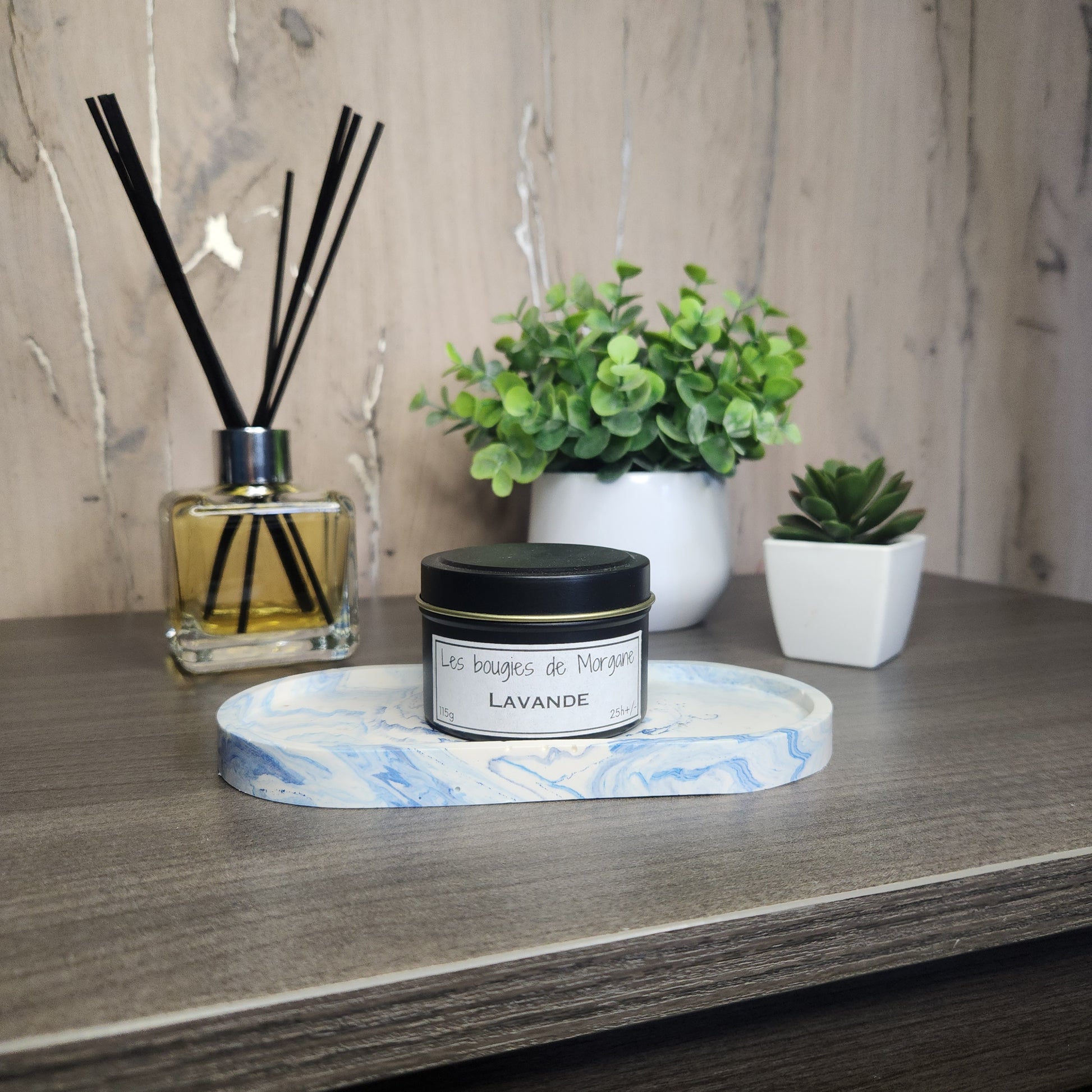 Ingrédients: Cire de soja 100% végétale, suivie de fragrance de Grasse, mèche en coton.