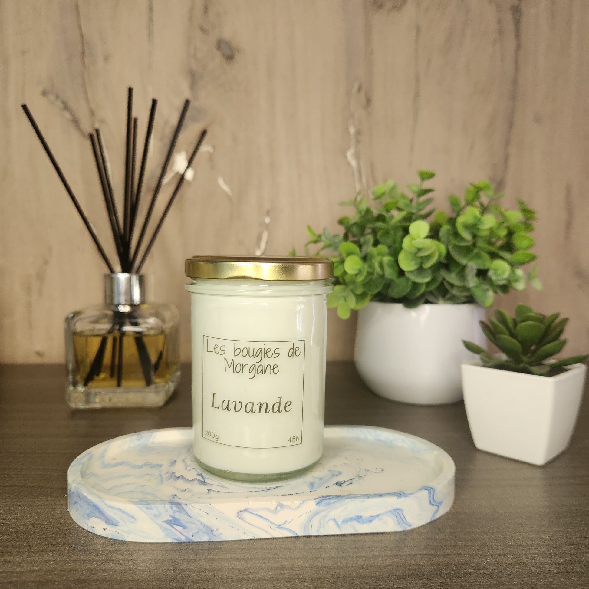 Ingrédients: Cire de soja 100% végétale, suivie de fragrance de Grasse, mèche en coton.