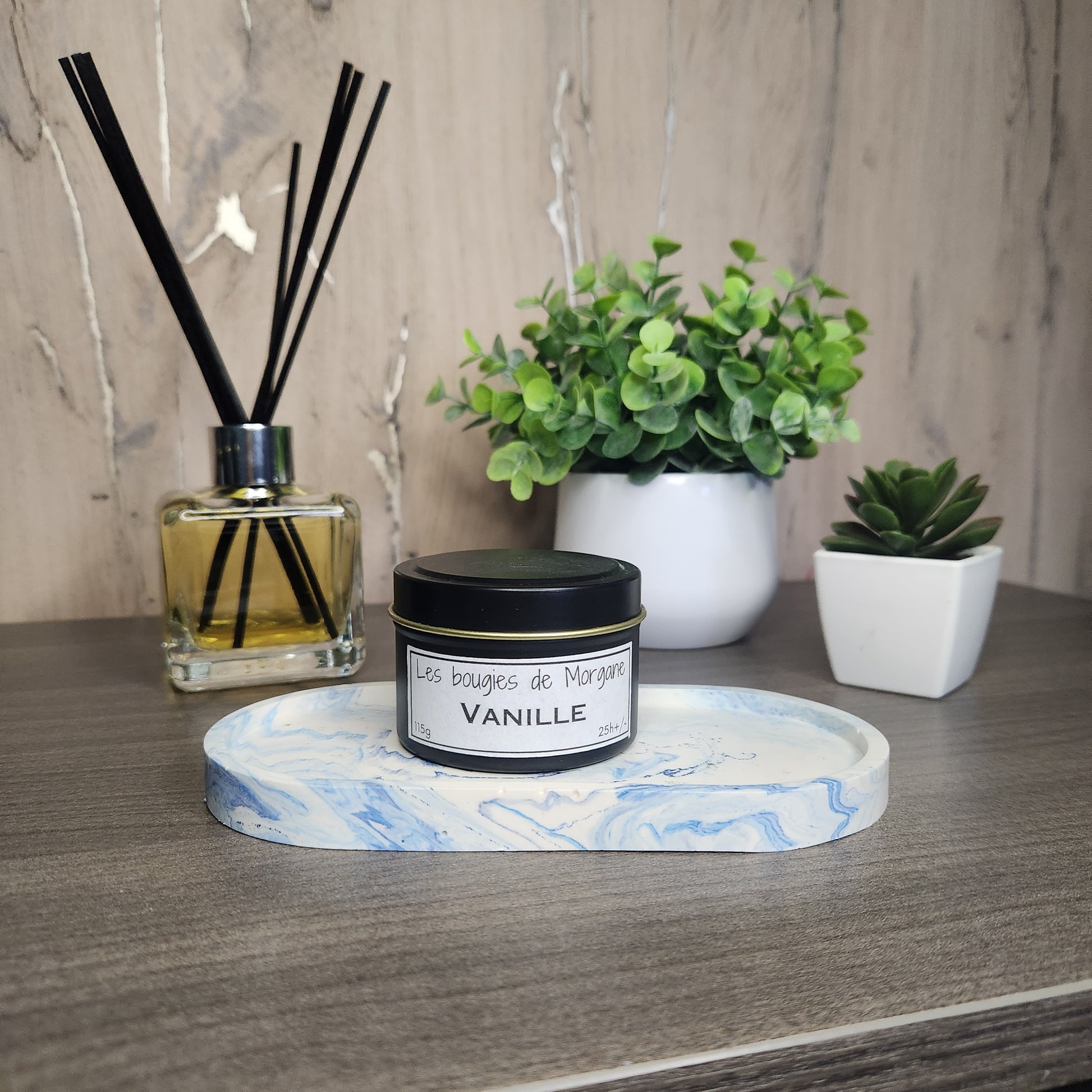 Ingrédients: Cire de soja 100% végétale, suivie de fragrance de Grasse, mèche en coton.