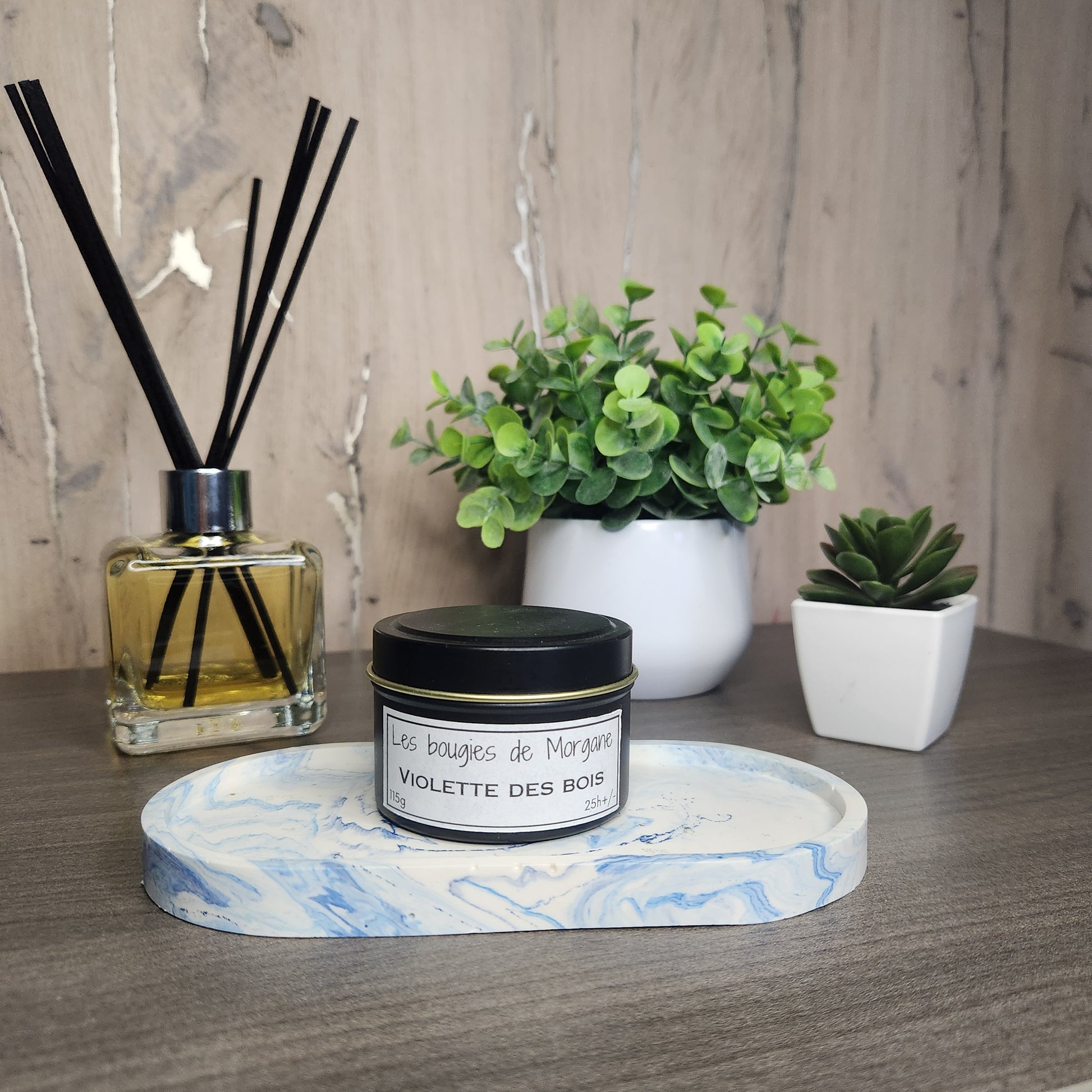 Ingrédients: Cire de soja 100% végétale, suivie de fragrance de Grasse, mèche en coton.