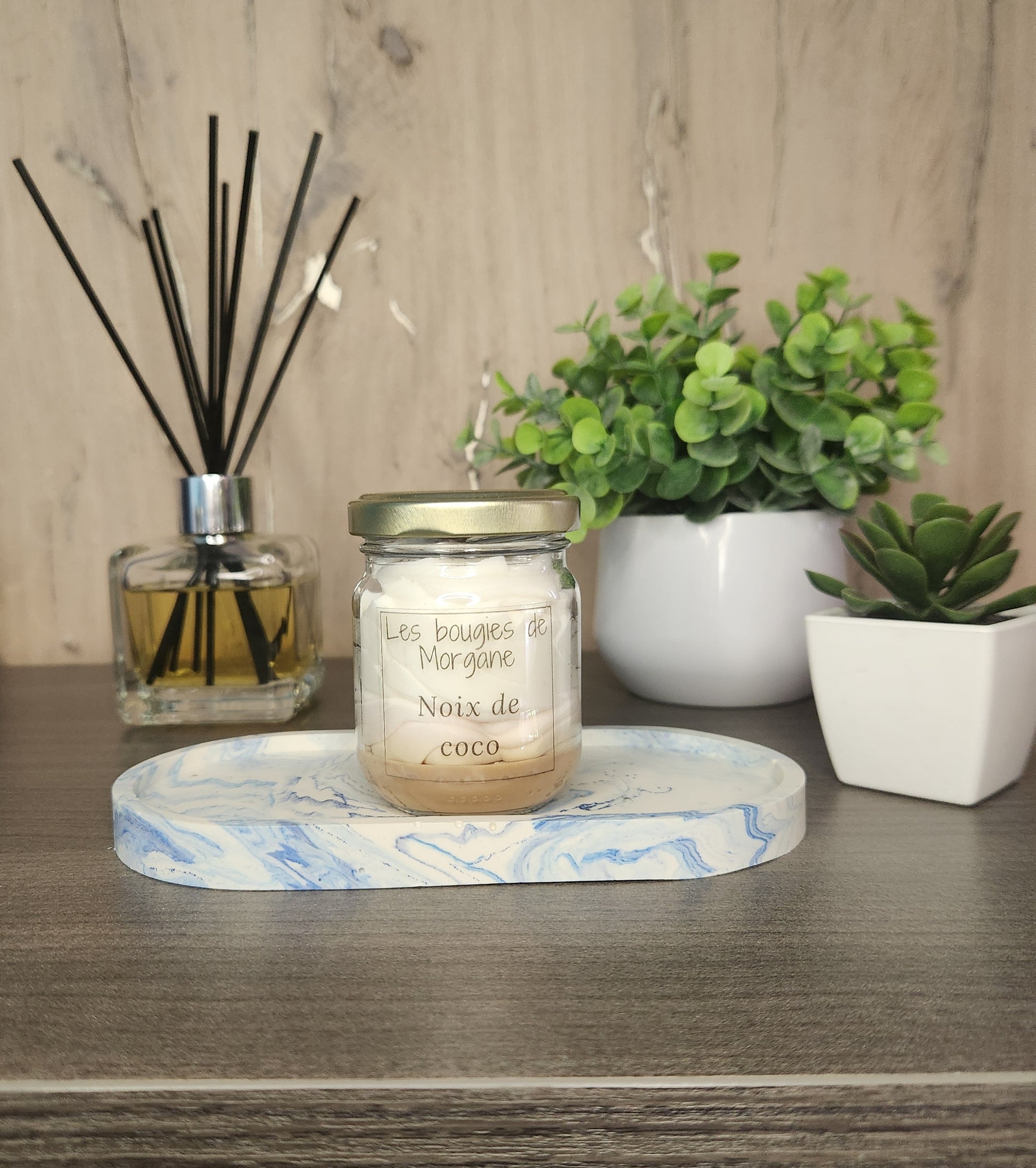 Ingrédients: Cire de soja 100% végétale, suivie de fragrance de Grasse, mèche en coton.
